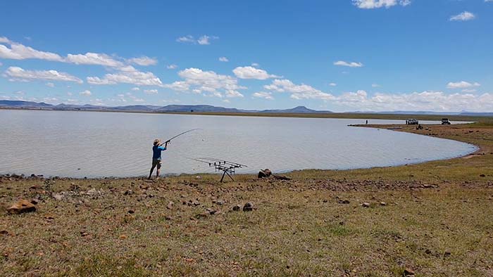 Rietvlei Dam view of our chalet from the water's edge