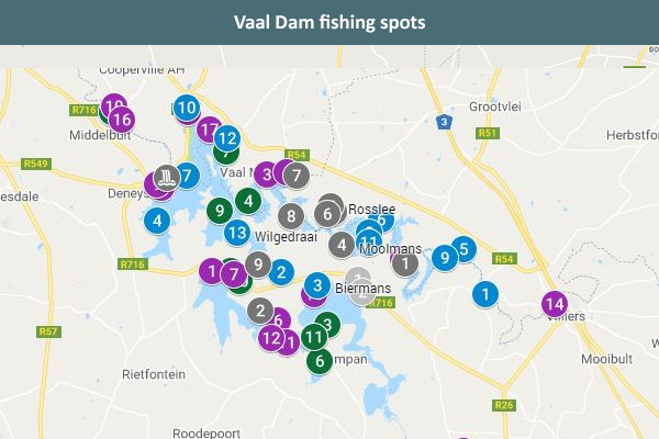 Vaal Dam fishing spots map