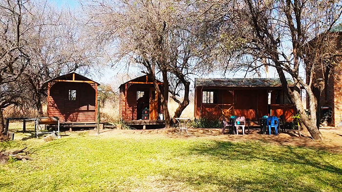 The basic cabins with ablution to the right